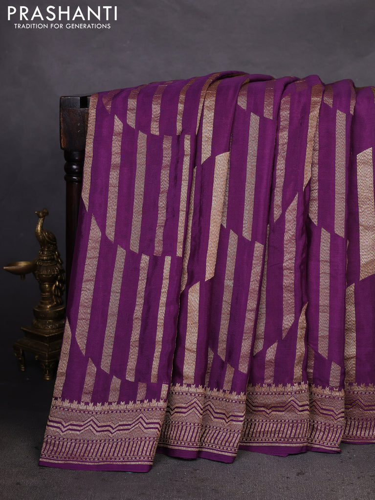 Banarasi crepe saree deep purple with allover geometric weaves and woven border