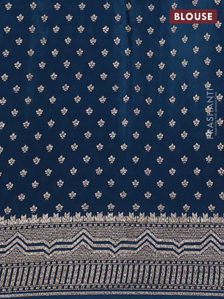 Banarasi crepe saree peacock blue with allover geometric weaves and woven border