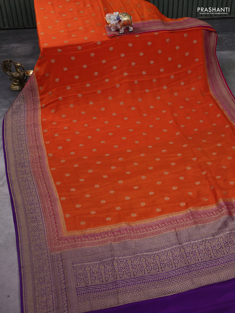 Banarasi crepe saree orange and pink violet with woven buttas and long woven border