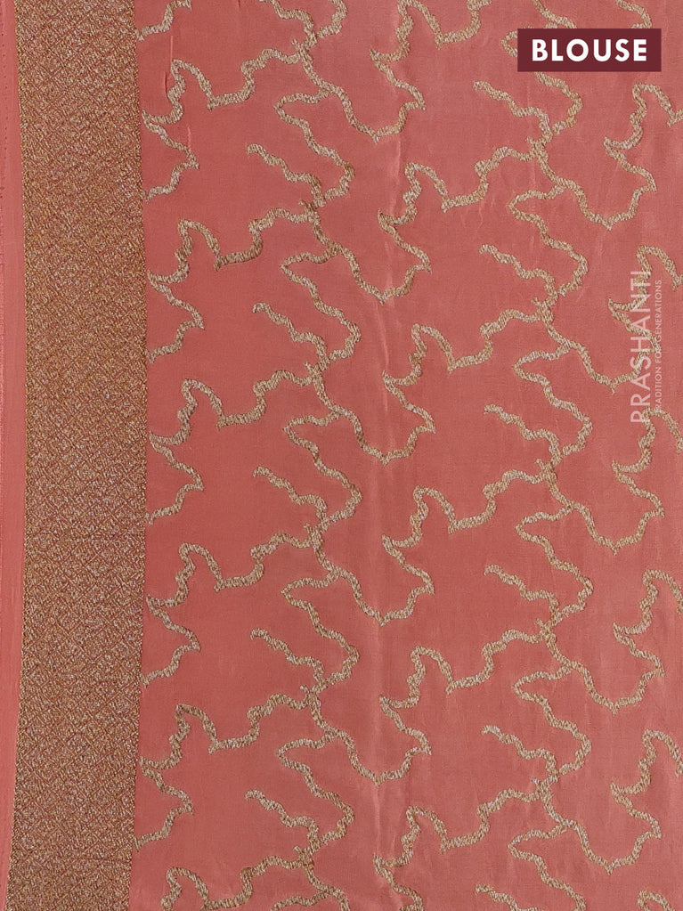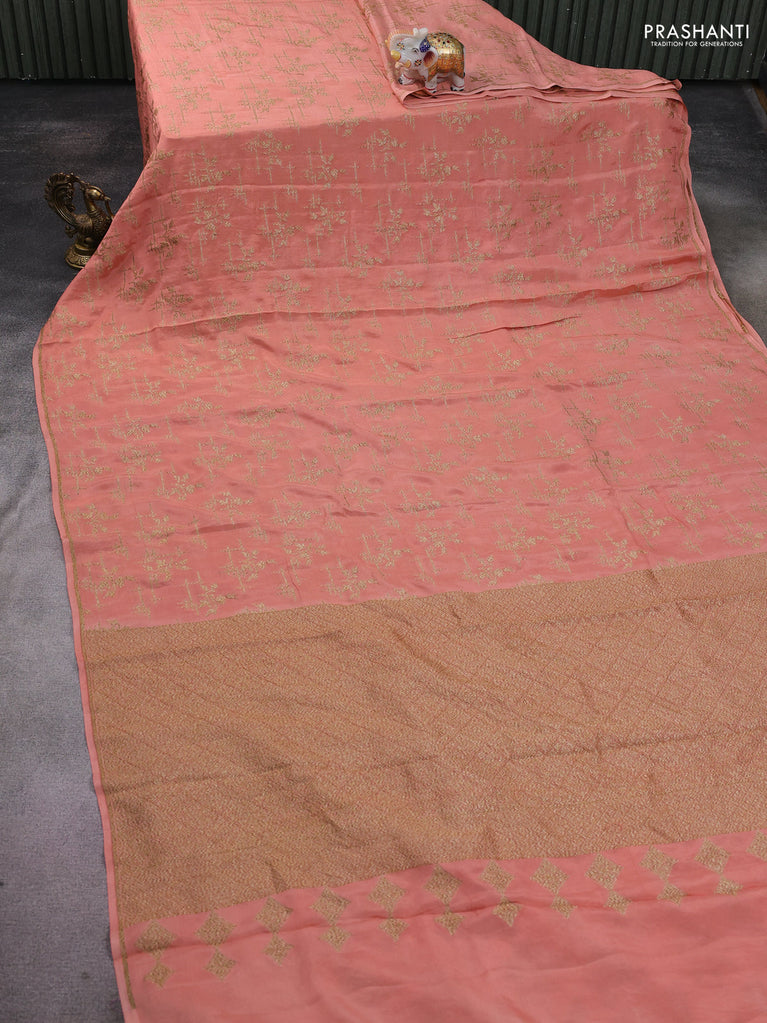 Banarasi crepe saree peach shade with woven buttas in borderless style