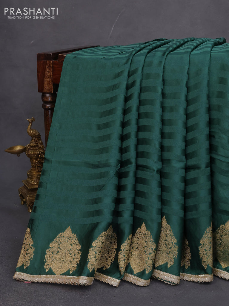 Banarasi crepe saree green with stripes pattern and mirror work & banarasi style border