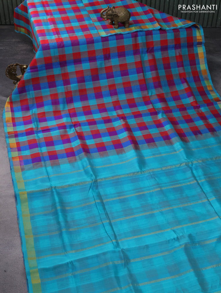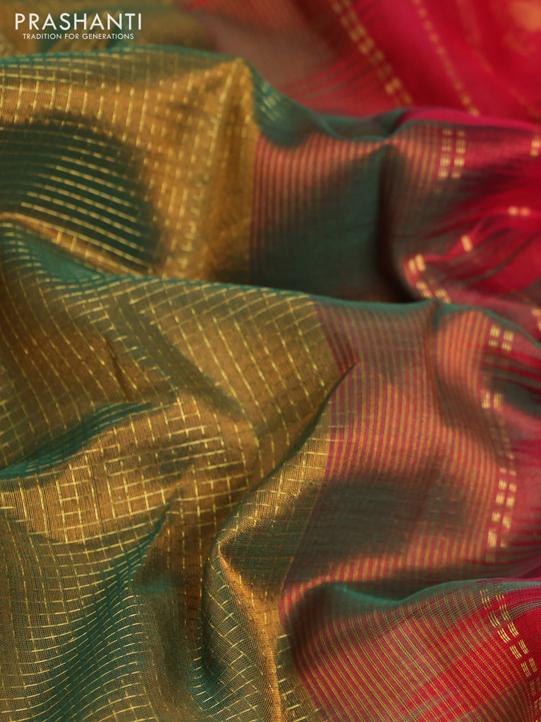 10 yards silk cotton saree multi colour and teal green with allover paalum pazhamum checks and zari woven border