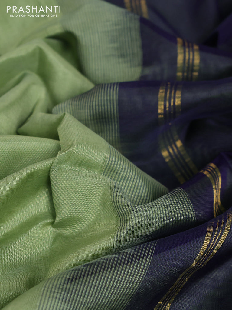 10 Yards silk cotton saree pastel green and navy blue with plain body and annam zari woven border