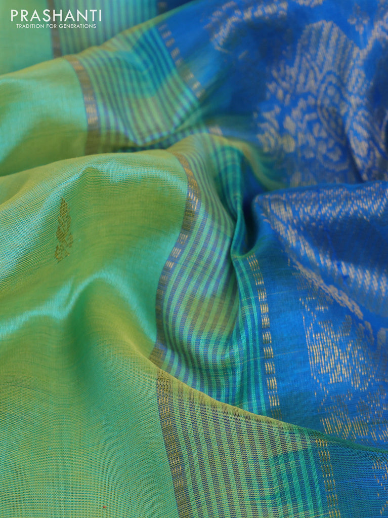 10 Yards silk cotton saree pista green and blue with zari woven buttas and zari woven korvai border
