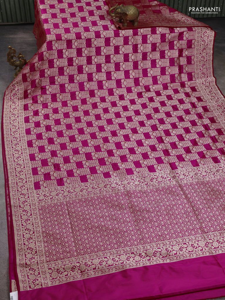 Banarasi uppada silk saree pink with allover zari woven brocade weaves and zari woven border