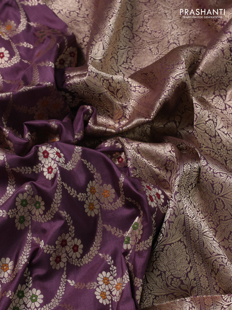 Banarasi uppada silk saree purple with allover zari woven floral brocade weaves and zari woven border