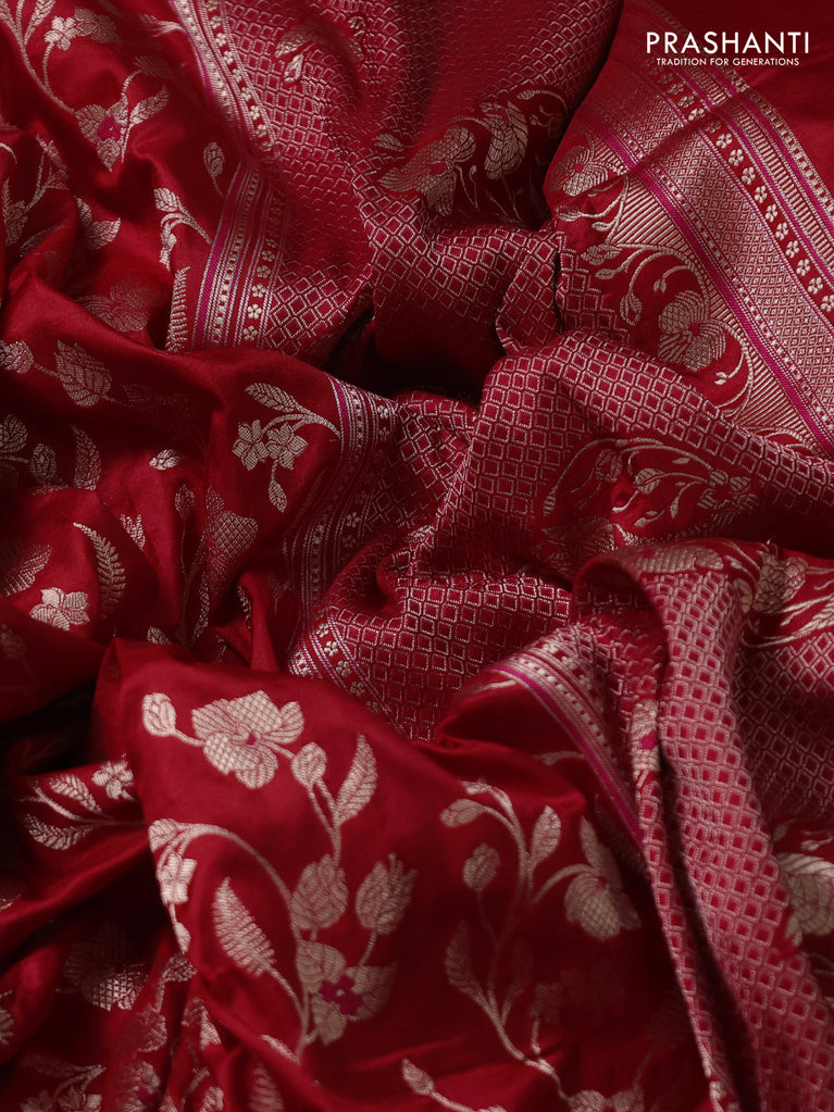 Banarasi uppada silk saree red with allover zari woven brocade weaves and zari woven border