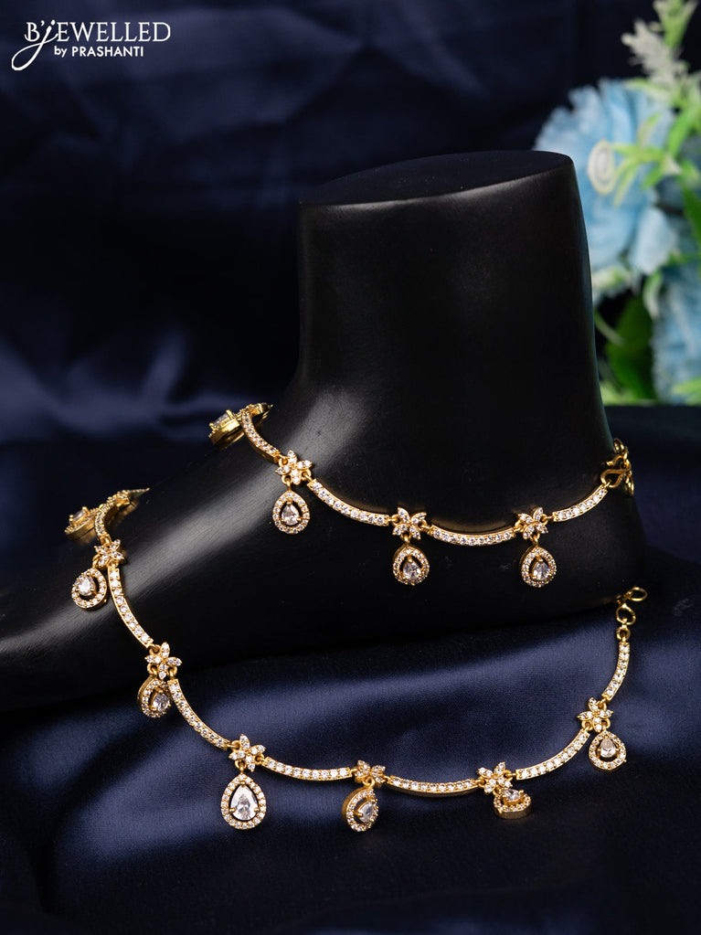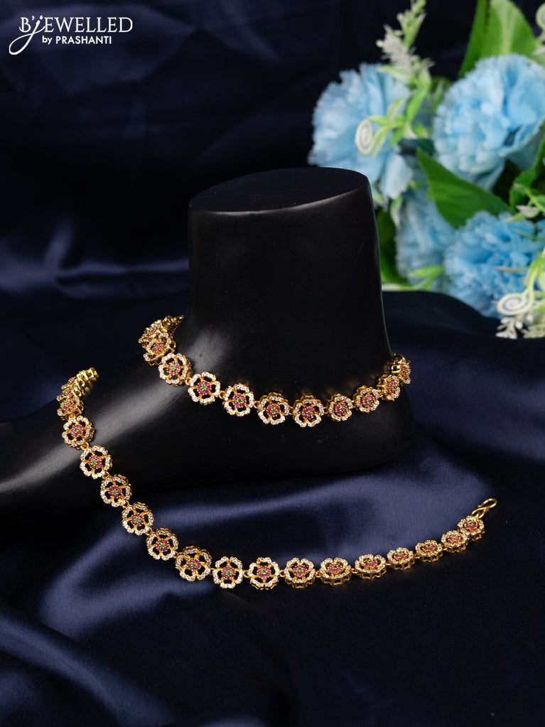 Antique anklet manga pattern with kemp & cz stones and pearls