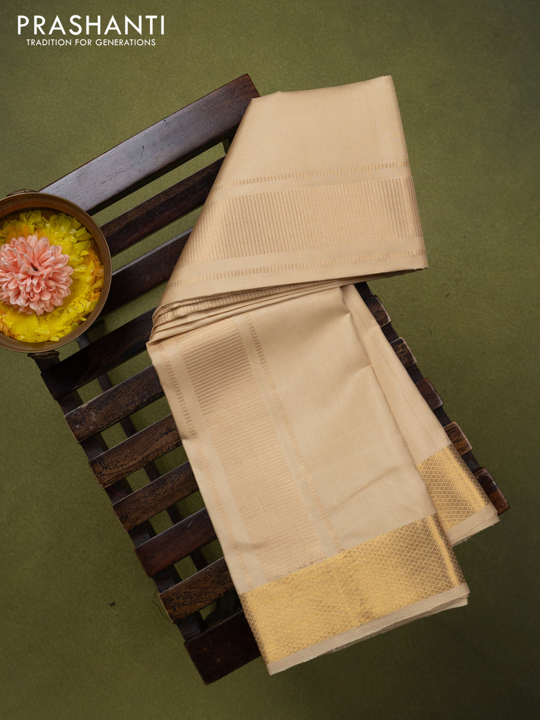 9x5 Pure silk dhoti and matching shirt bit cream with zari woven border