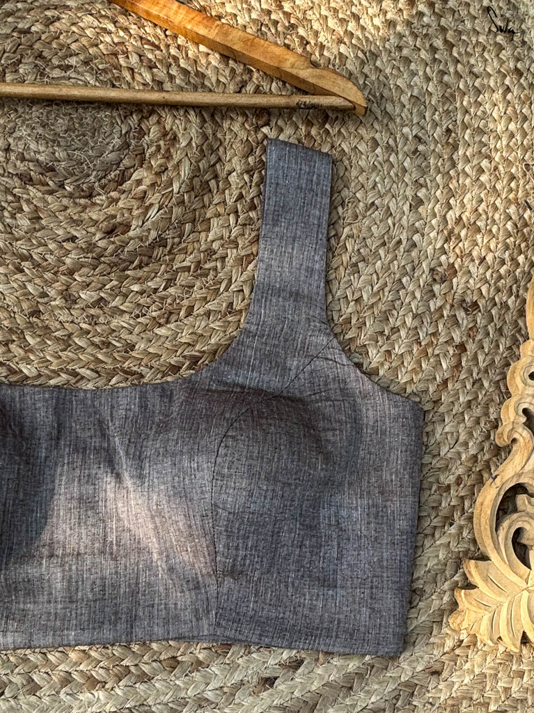 This saree is elegance steeped in deep, velvety hues. Crafted from airy mul cotton, the saree feels feather-light yet luxurious, wrapping you in comfort with every move.