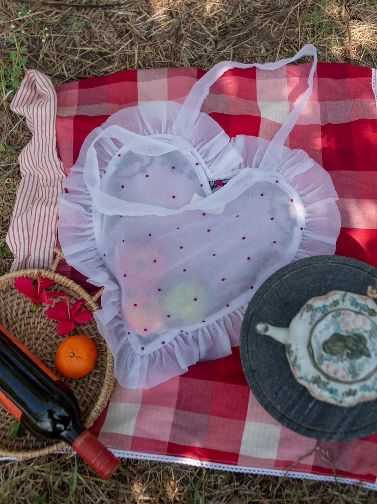 Feel the pulse of love with every heartbeat through Dil Ka Rhythm. This charming heart-shaped bag, crafted from organza, features embroidered crisscross checks that seem to echo the rhythm of a love song. With every beat, Dil Ka Rhythm whispers sweet nothings, gently reminding you that love is the melody that makes life truly magical.