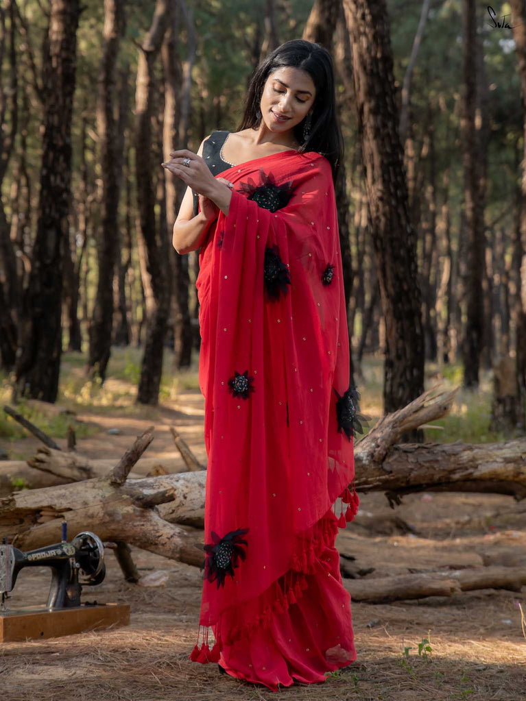 NOTE : Fall and ending is not required for a ruffle saree. You can drape this saree like a regular saree as it is not pre stitched.