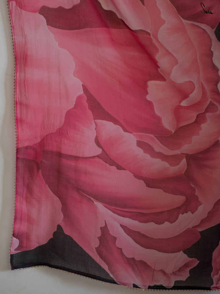 This saree is timeless elegance with a blooming twist. The soft black mul cotton drapes like a dream - lightweight, breathable, and endlessly flattering, making it a perfect go-anywhere, glow-everywhere piece.