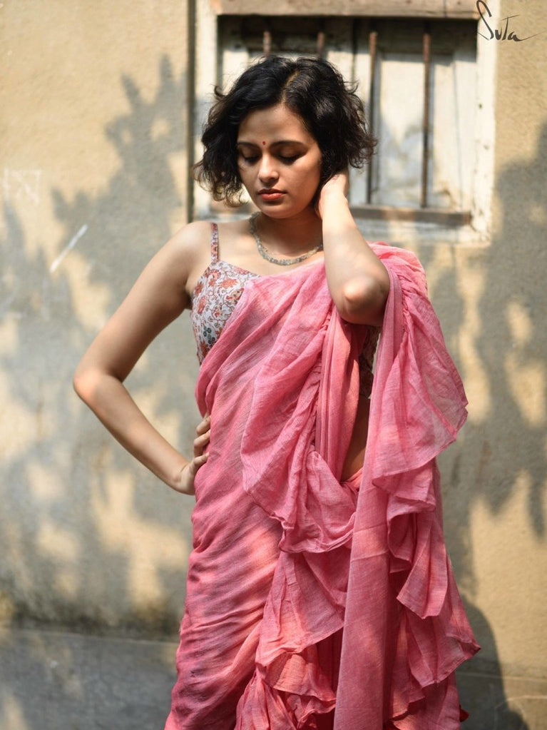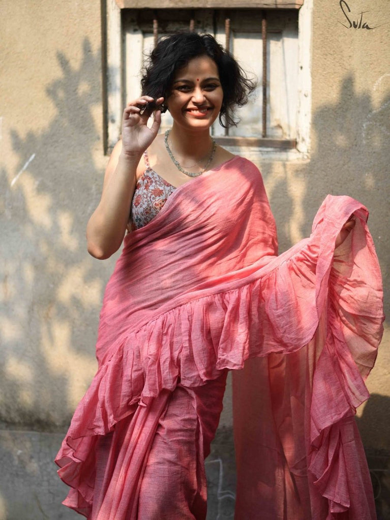 Ruffles are the perfect addition to the incredibly soft and light made-in-heaven Mul fabric. These pretty ruffle sarees are an amazing addition to your wardrobe because they offer the perfect mix of elegance and spunk.