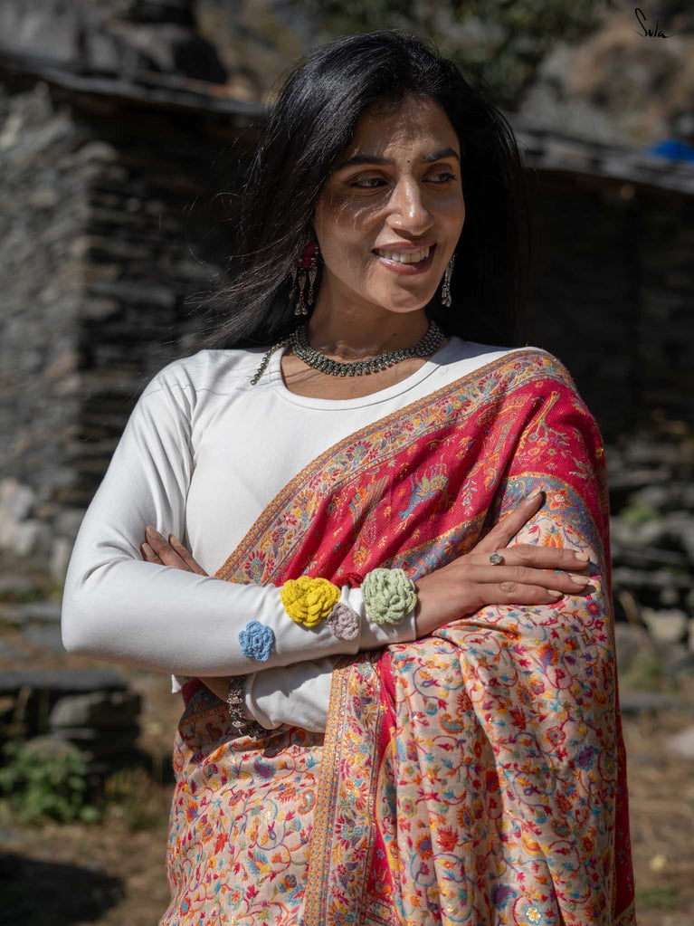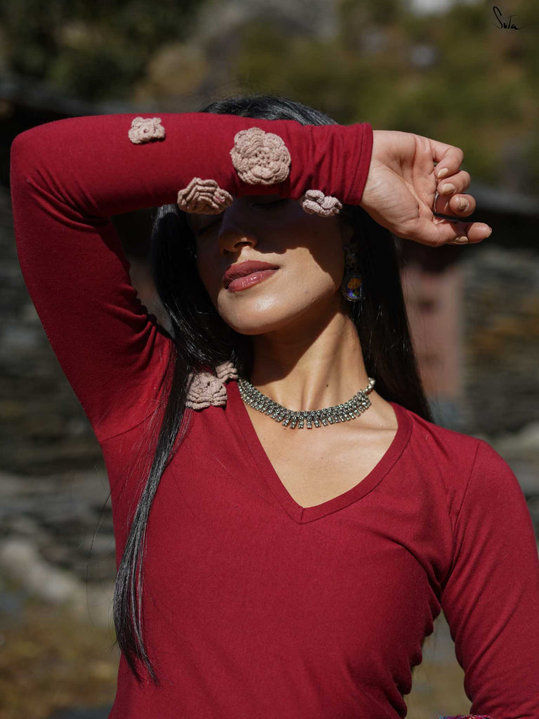 This gorgeous cotton red and pink blouse is the perfect accompaniment for those who never hesitate to seek their hearts’ true desires.