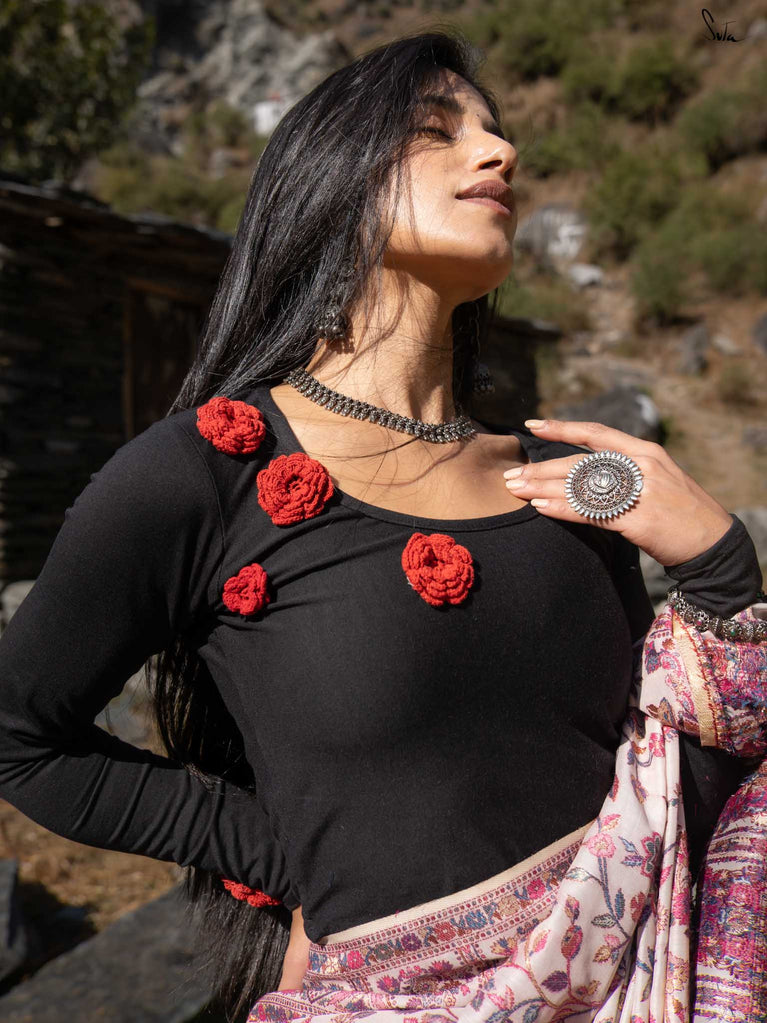 Note: Our blouse comes with an extra margin, allowing you to easily size up for a perfect fit.