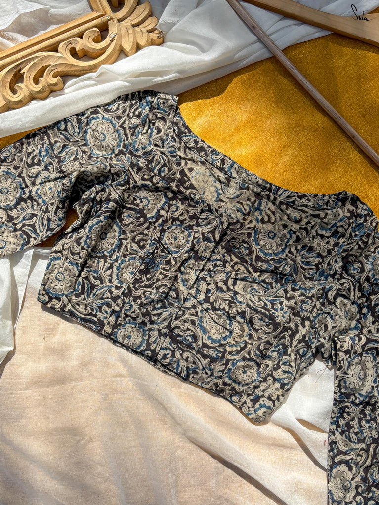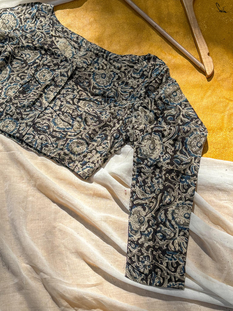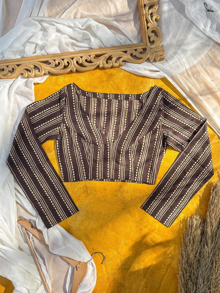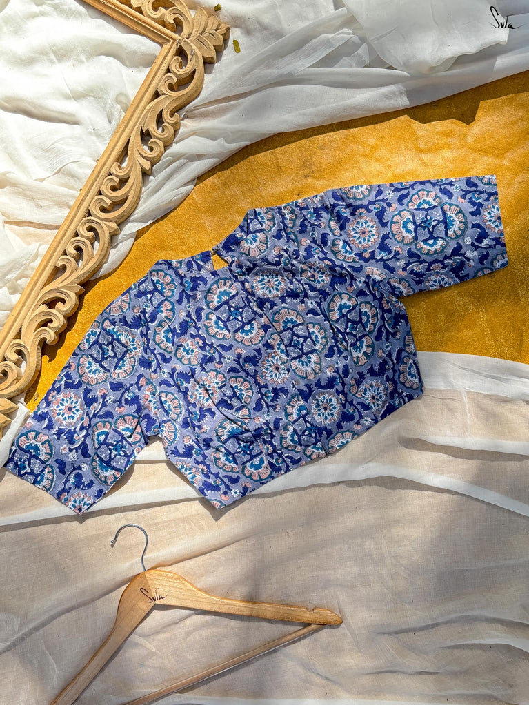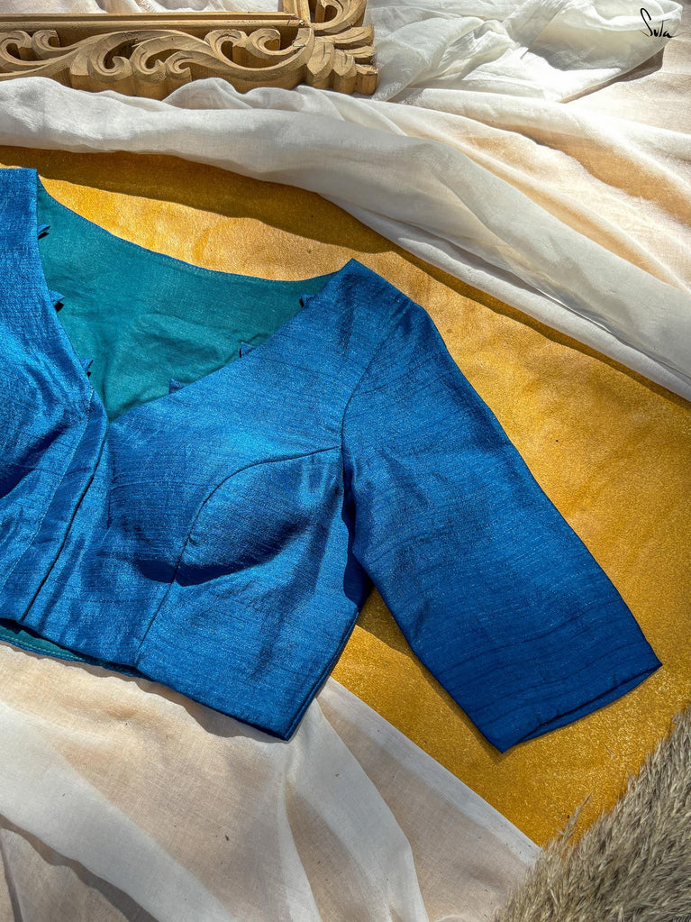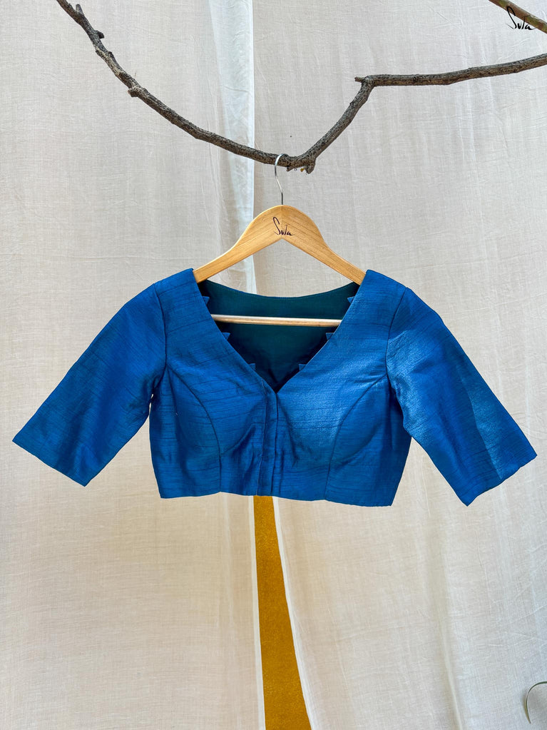 Around Bust: 84cm Waist: 68.5 cmShoulder: 34cmSleeve Length:56cm Sleeve Loose:22cm Armhole: 38cmFront Neck Depth: 25cmBack Neck Depth: 4 cmShoulder Strap: 3 cm Blouse Length: 36 cmNeck Line: Neck V neck Opening: front hook Type: Non Padded