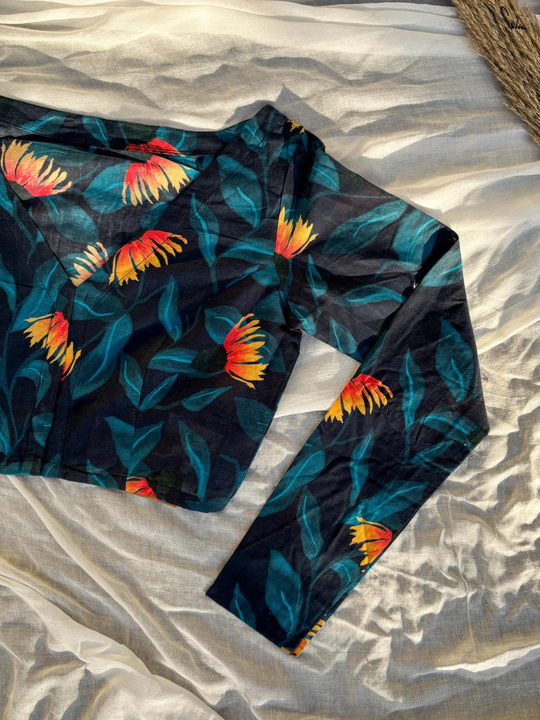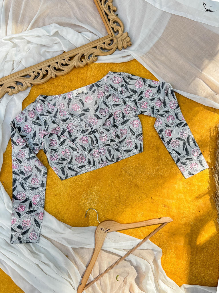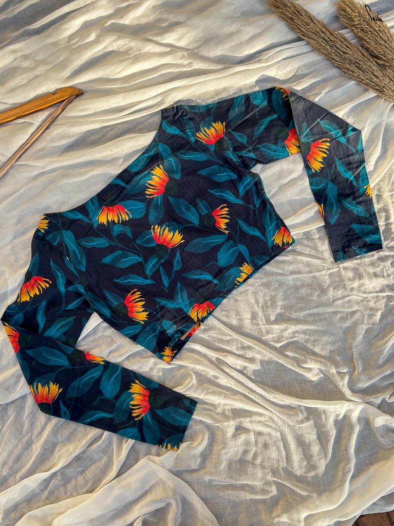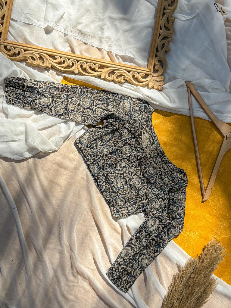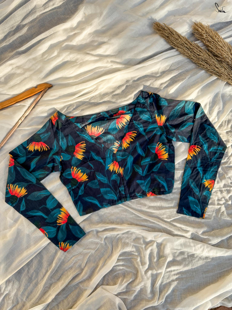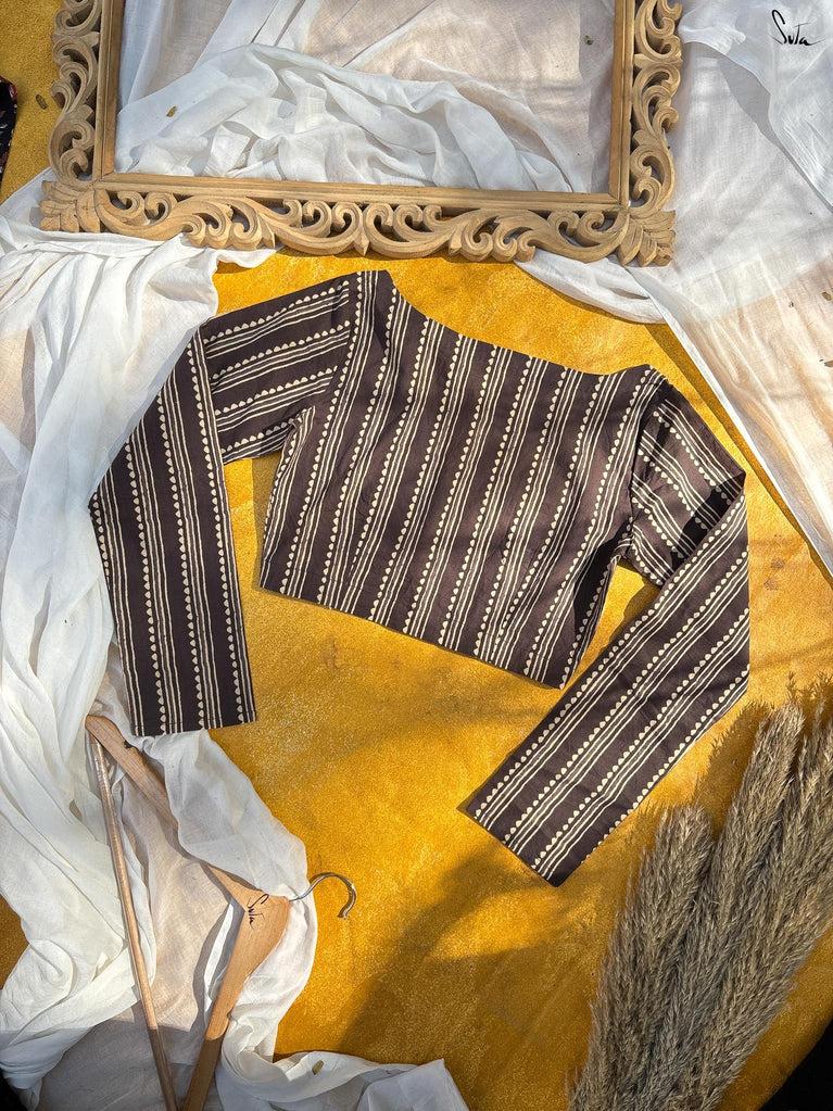 Around Bust: 84cm Waist: 68.5 cmShoulder: 34cmSleeve Length:56cm Sleeve Loose:22cm Armhole: 38cmFront Neck Depth: 25cmBack Neck Depth: 4 cmShoulder Strap: 3 cm Blouse Length: 36 cmNeck Line: Neck V neck Opening: front hook Type: Non Padded