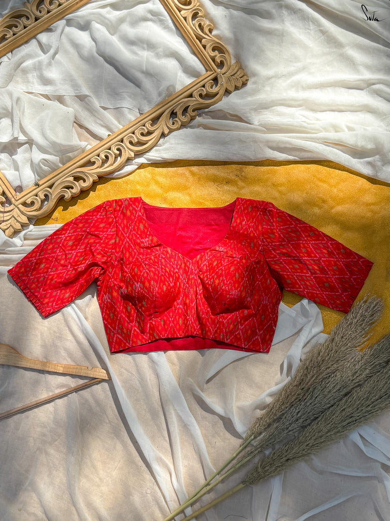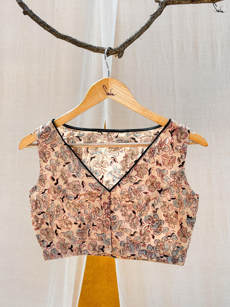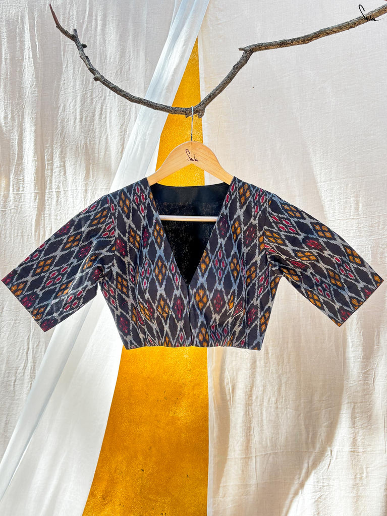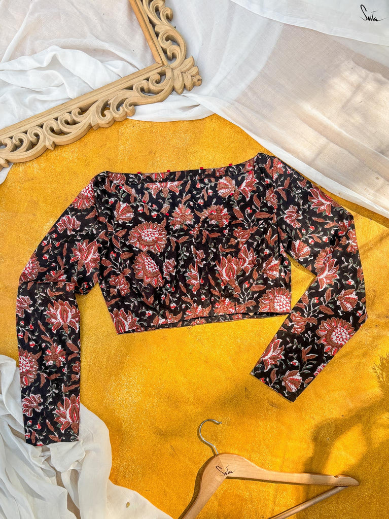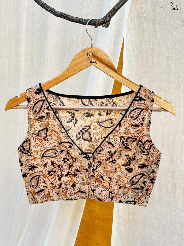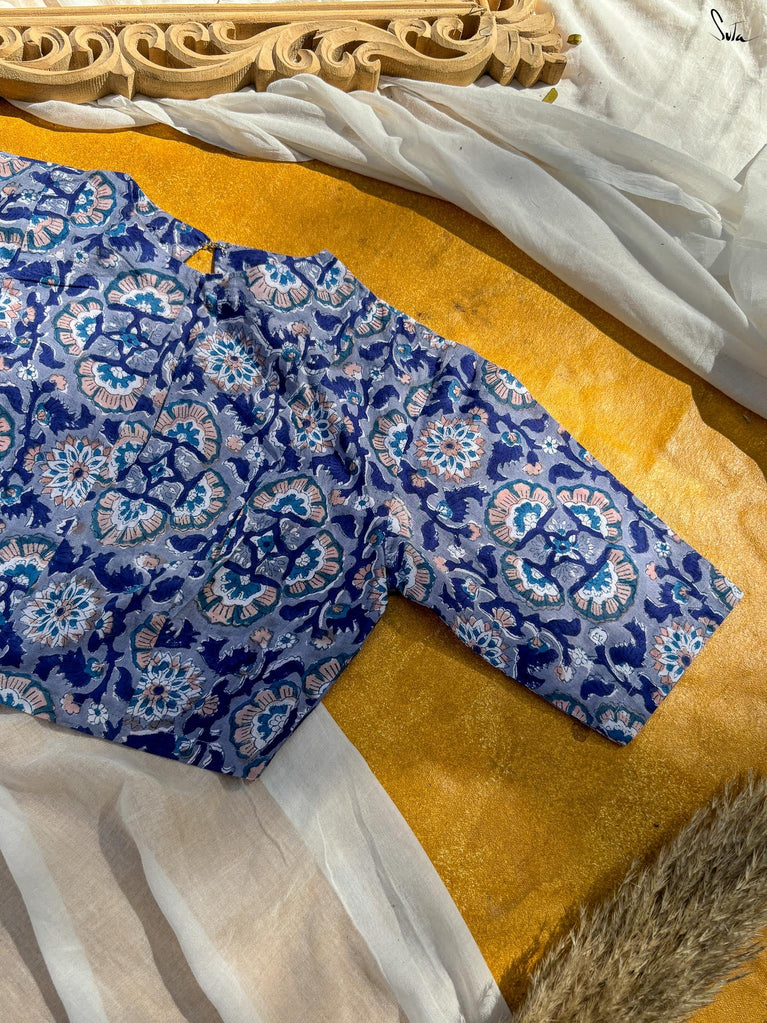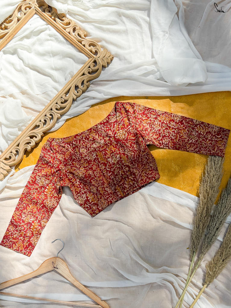 Around Bust: 84cm Waist: 68.5 cmShoulder: 34cmSleeve Length:56cm Sleeve Loose:22cm Armhole: 38cmFront Neck Depth: 25cmBack Neck Depth: 4 cmShoulder Strap: 3 cm Blouse Length: 36 cmNeck Line: Neck V neck Opening: front hook Type: Non Padded