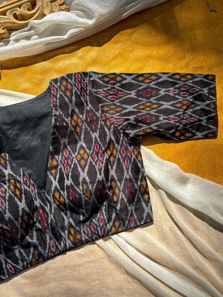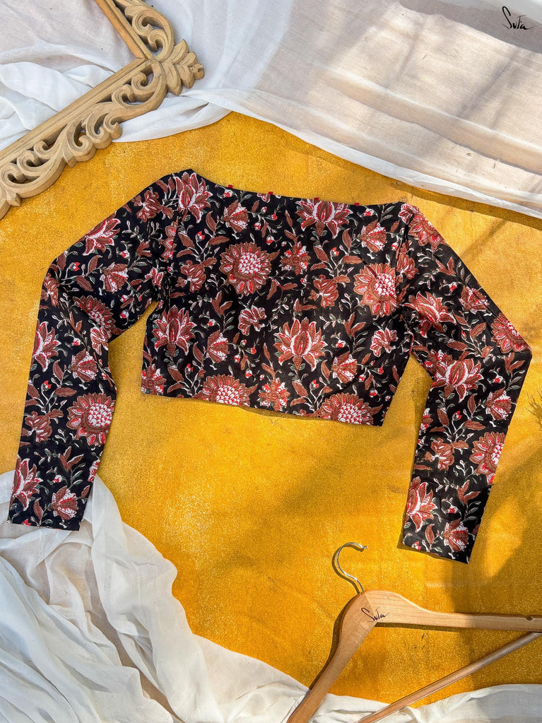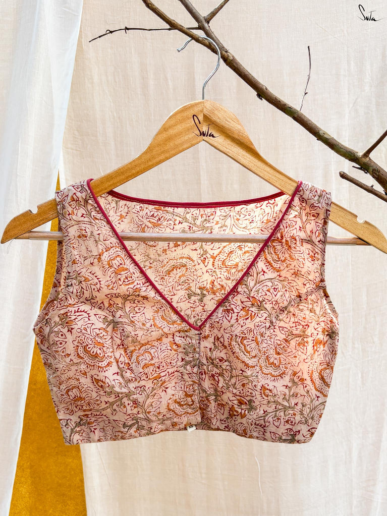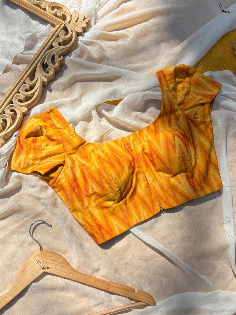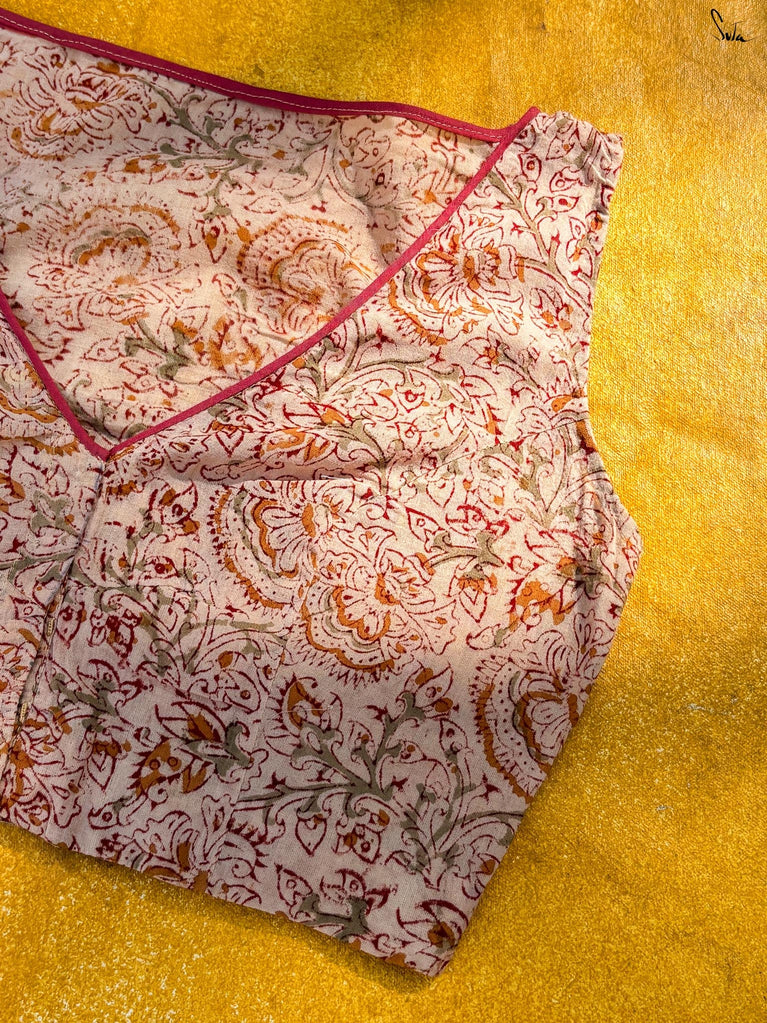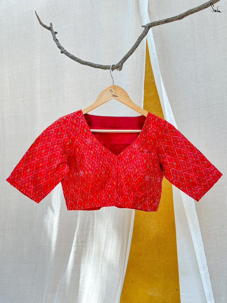 Around Bust: 84cm Waist: 68.5 cmShoulder: 34cmSleeve Length:56cm Sleeve Loose:22cm Armhole: 38cmFront Neck Depth: 25cmBack Neck Depth: 4 cmShoulder Strap: 3 cm Blouse Length: 36 cmNeck Line: Neck V neck Opening: front hook Type: Non Padded