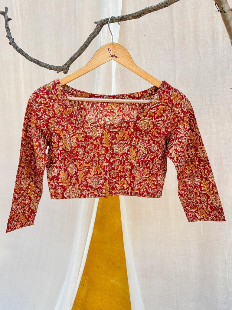 Around Bust: 84cm Waist: 68.5 cmShoulder: 31 cmSleeve Length: 51cm Sleeve Loose:20cm Armhole: 40 cmFront Neck Depth: 18 cmBack Neck Depth: 2 cmShoulder Strap: 3 cm Blouse Length: 35 cmNeck Line: round Neck Opening: Front Hook Type: Non Padded