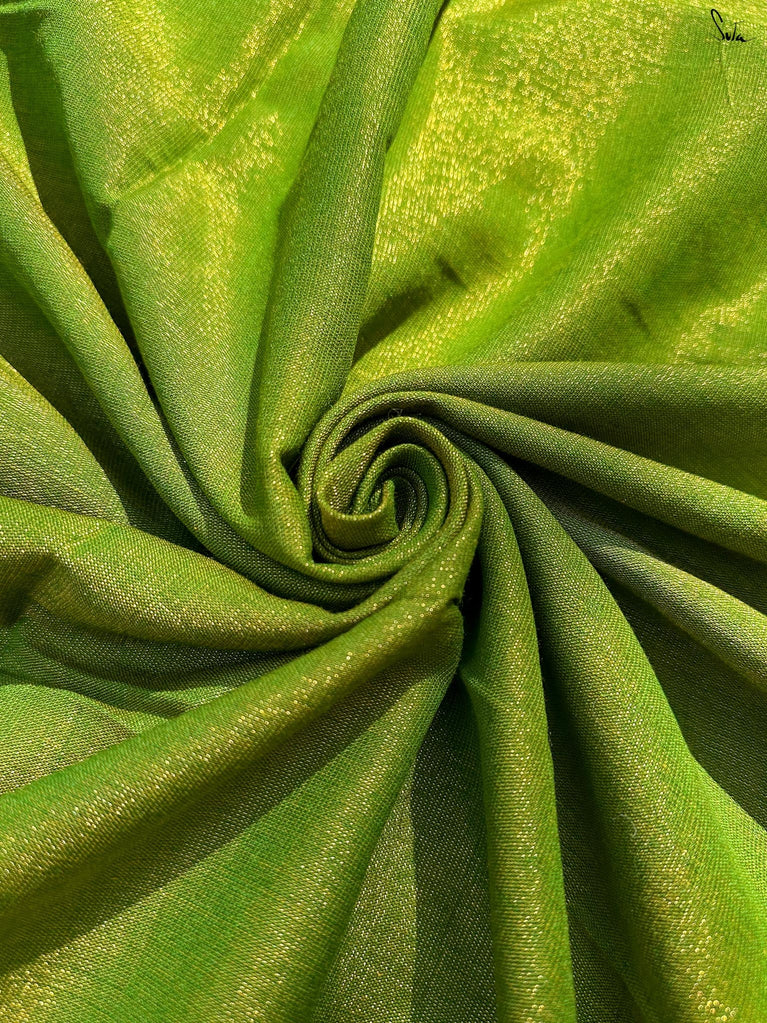 A bright lime green that feels joyful, fresh, and full of life. This crushed viscose lehenga is made for wedding days that are all about colour, movement, and endless smiles. Light on the body with a soft festive shine, it flows easily and keeps you comfortable through every ritual and dance. Scalloped gold lace adds a gentle glow, while tassels bring a playful finish.Style it with a blouse for a festive look, drape it with a saree, or wear it as a skirt with your favourite crop top. Because maasi ki shaadi deserves a little extra brightness, without any heaviness.