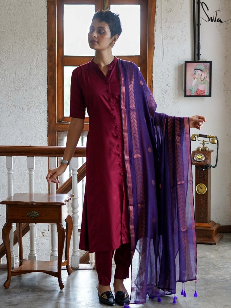Cotton silk is a blend of cotton and silk. Clothes made of this fabric are lightweight, soft, breathable, and have an elegant sheen. This hybrid fabric is especially popular as it can be worn with comfort and ease during both summers and winters. The subtle addition of zari elevates the overall aesthetic of these garments, making them extremely suitable to wear to special occasions.