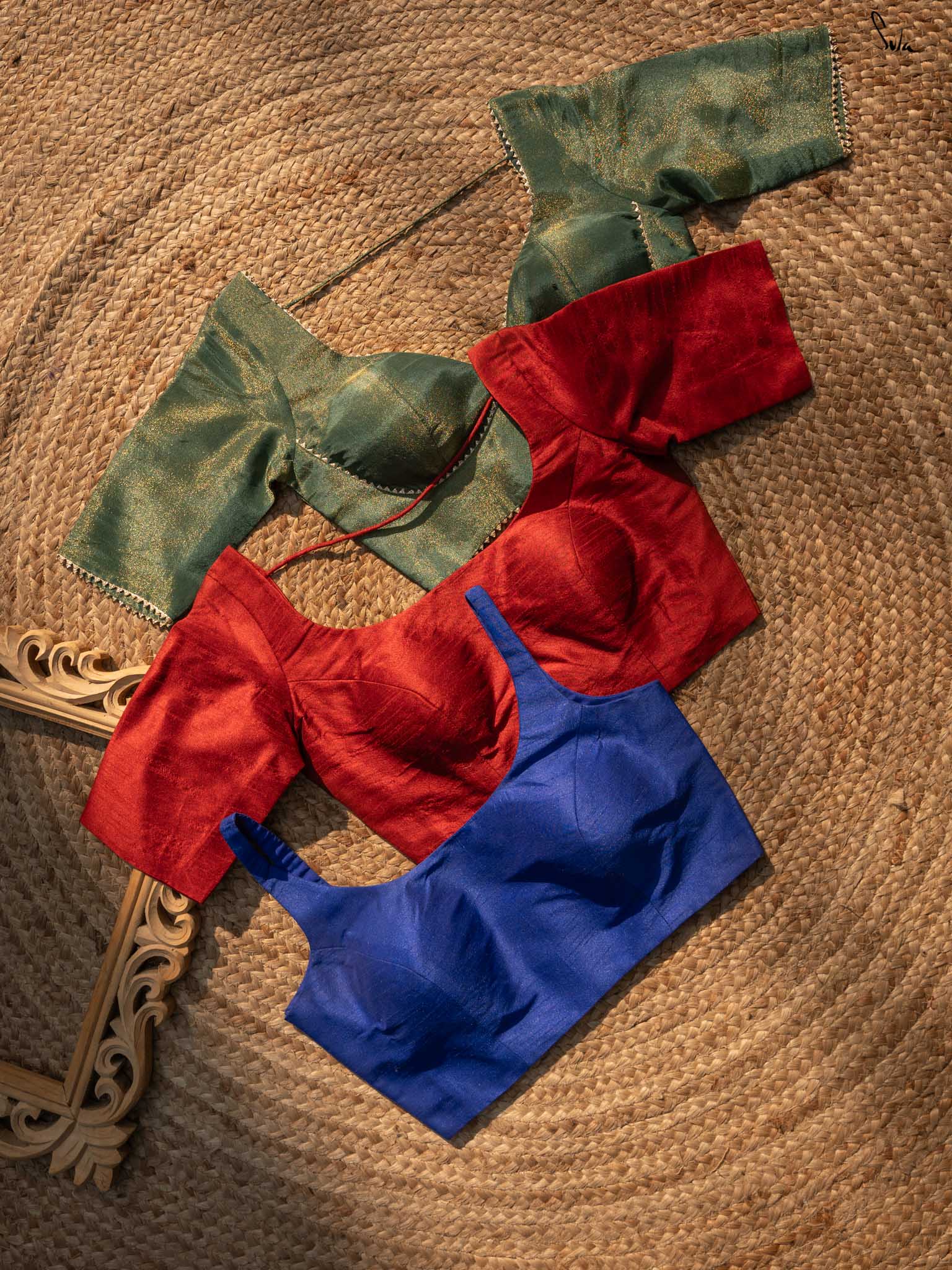 Comfort and style in one package! With the Bansuri combo, you get three blouses made from artificial silk and viscose zari. Each piece feels just as good as it looks, giving you all-day comfort without compromising on style.