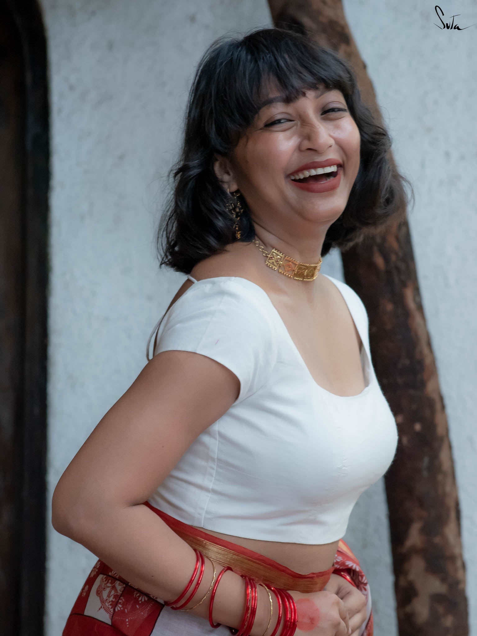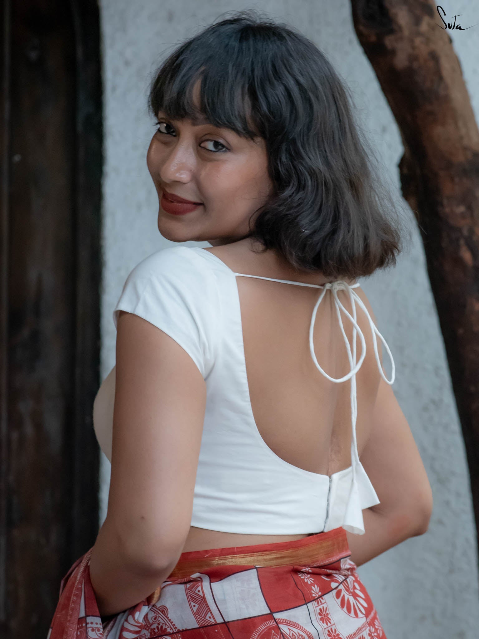 Simple never looked this striking. This white cotton blouse with a clean U-neckline is that quiet essential every Pujo wardrobe needs. Breathable, easy, and endlessly versatile, it slips into your festive line-up without asking for effort.
