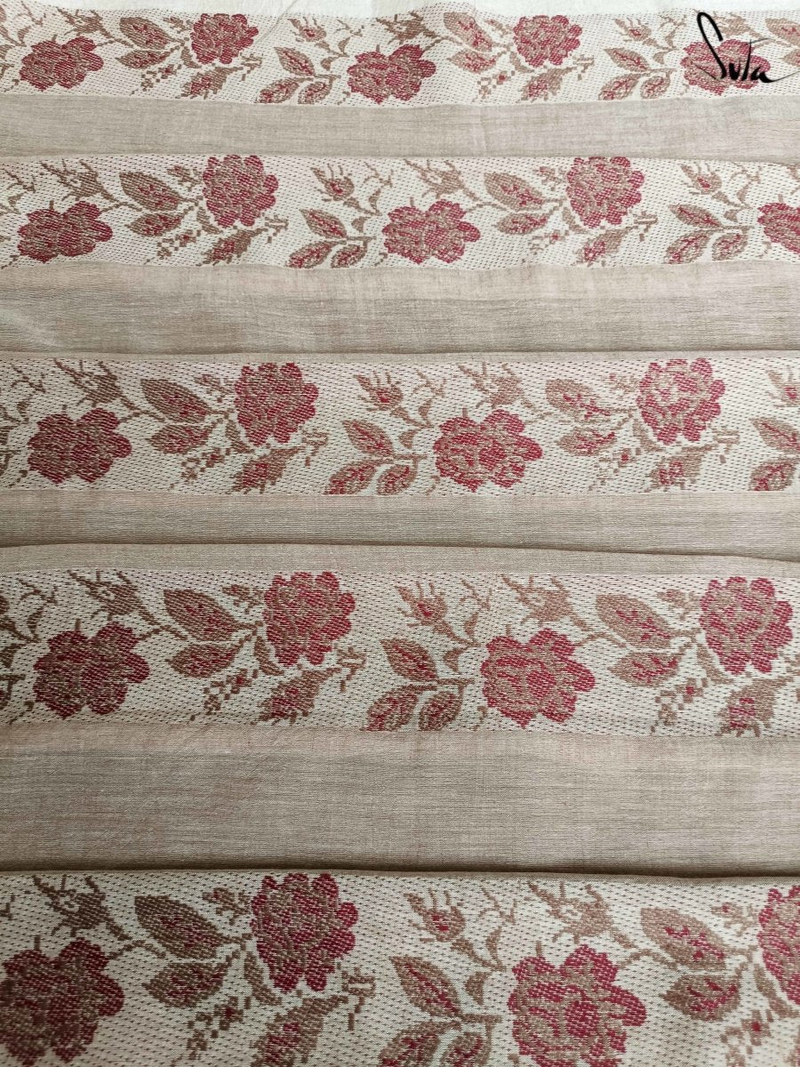 Suta’s signature ‘made in heaven’ mul cotton, is also known as mul mul in West Bengal. The fabric is buttery soft and has a delicate beauty. Its weave is very fine and this lends a very fluid texture to the fabric. These curtains also feature woven floral motifs to add an air of sophistication to the fabric.