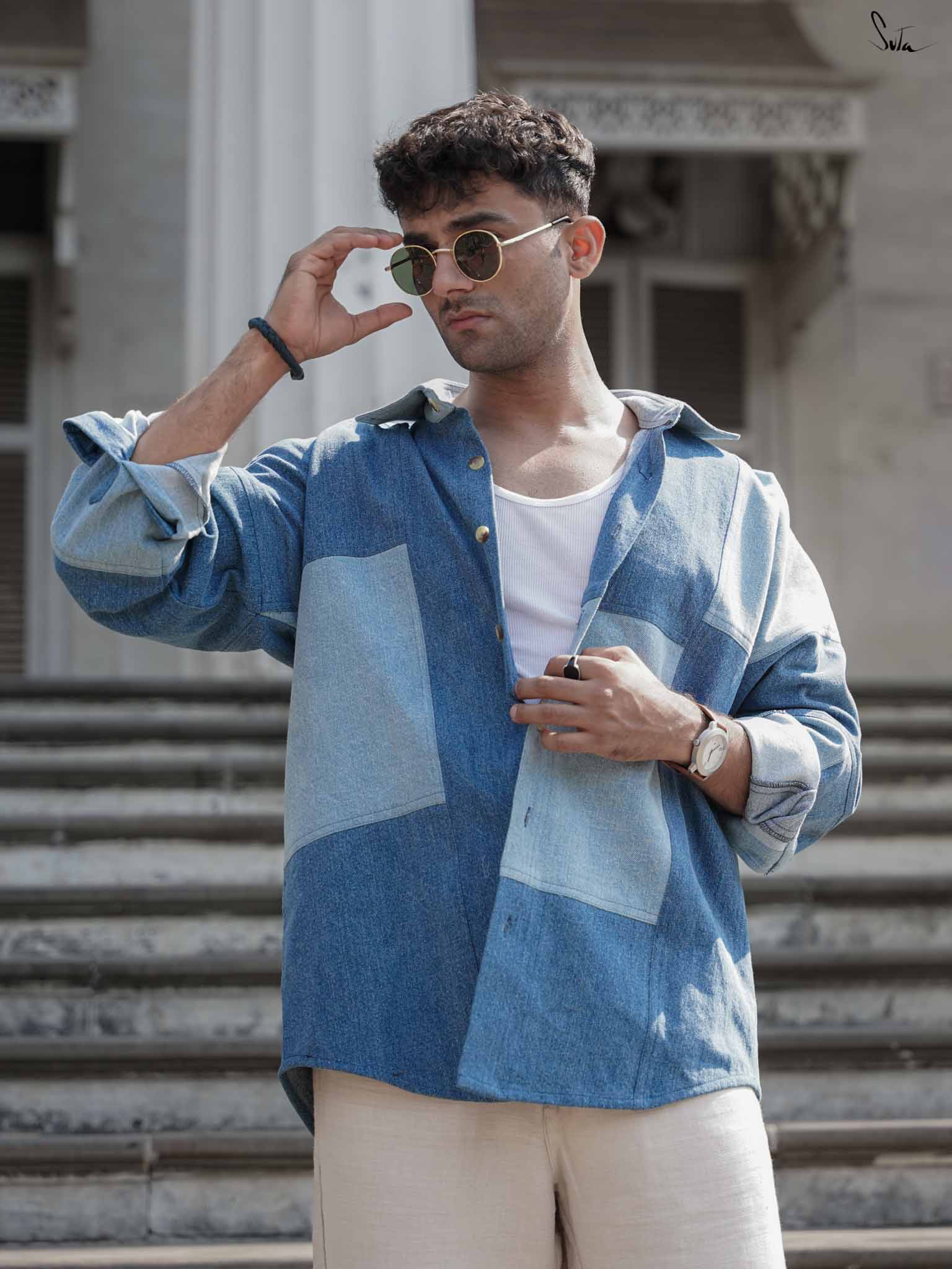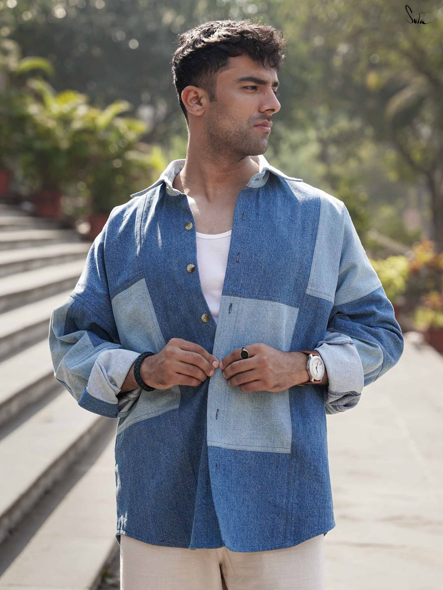 Make a lasting impression with Denimyte, where the dynamic power of dynamite meets the timeless elegance of denim. This standout denim patchwork jacket, crafted from a sophisticated blend of light and dark washed denim, can effortlessly transform into a shirt for unparalleled versatility. With its bold craftsmanship and energetic spirit, Denimyte ensures you make a statement that radiates style and confidence.