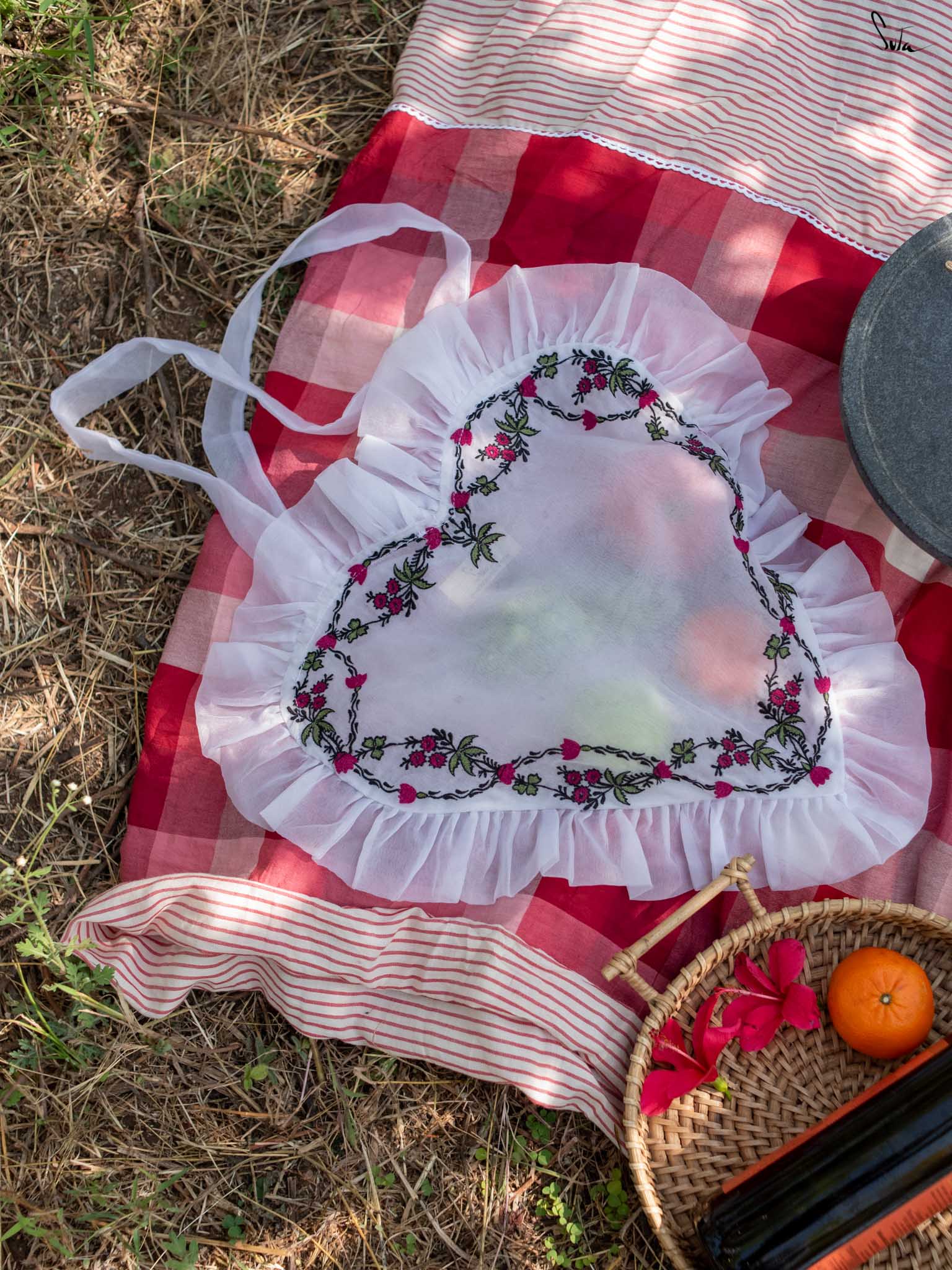 Feel the pulse of love with every heartbeat through Dil Ka Rhythm. This charming heart-shaped bag, crafted from organza, features embroidered crisscross checks that seem to echo the rhythm of a love song. With every beat, Dil Ka Rhythm whispers sweet nothings, gently reminding you that love is the melody that makes life truly magical.