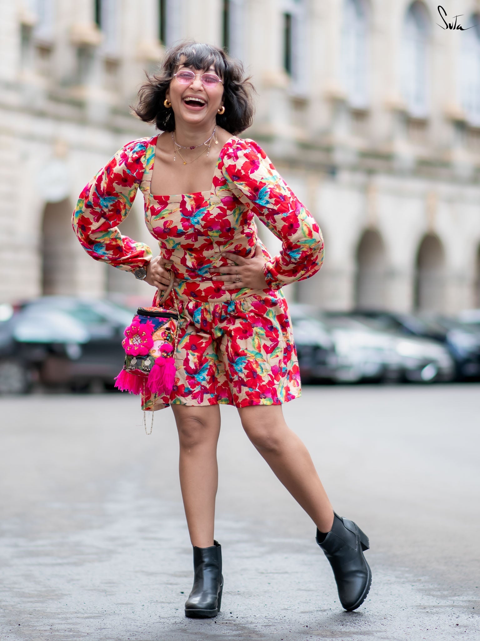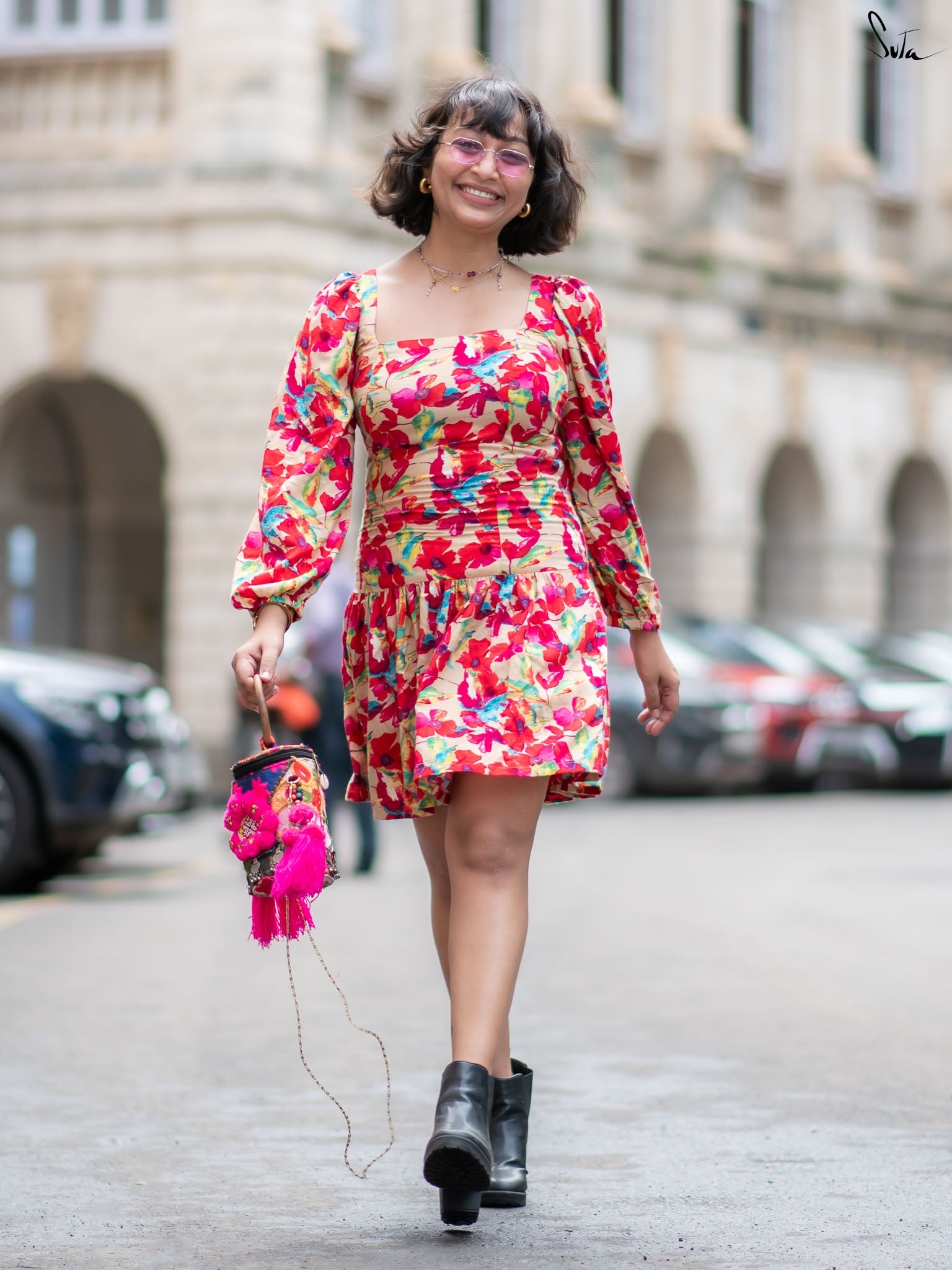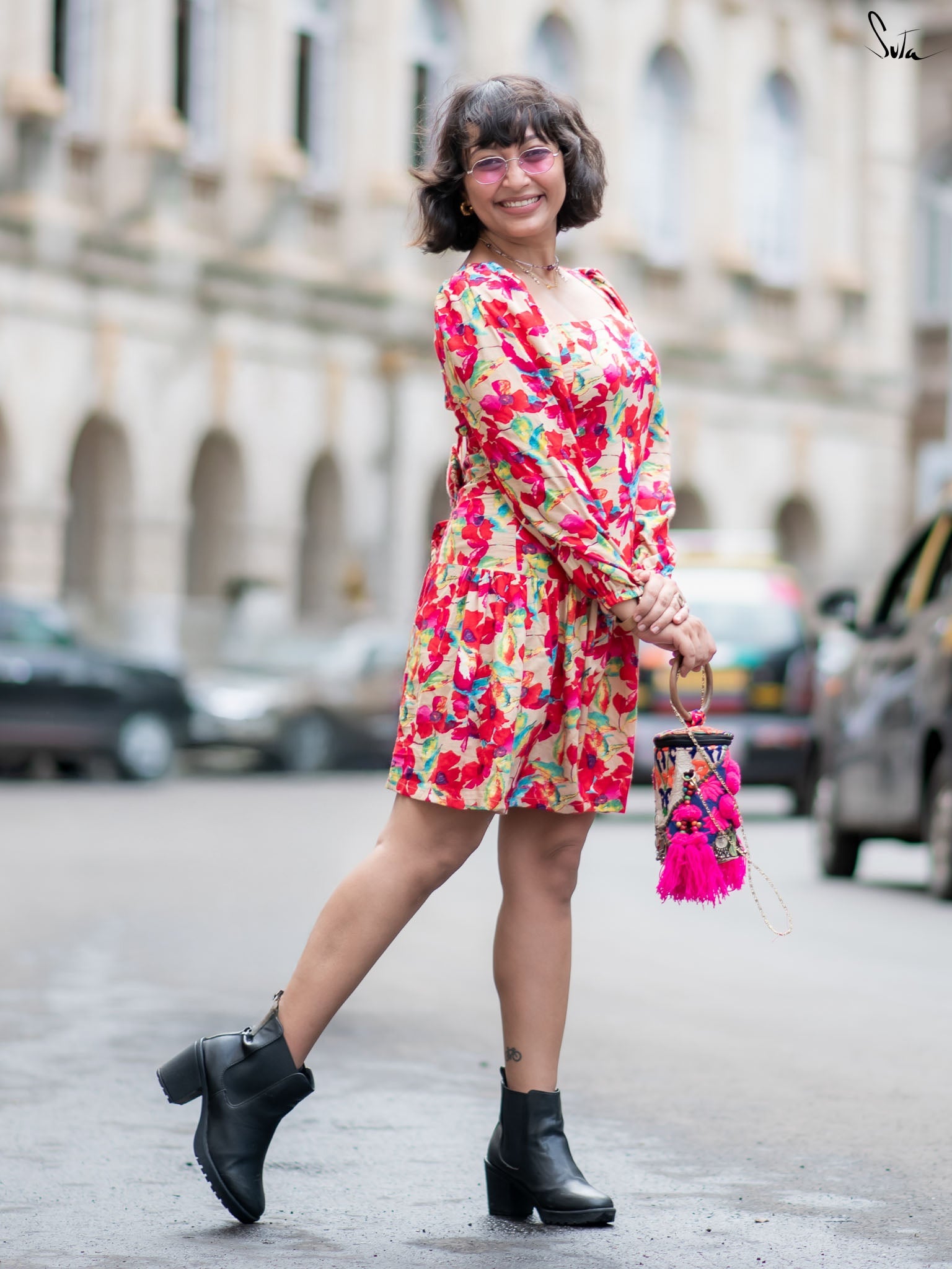 Designed to move with you. This multicolour floral printed dress features a flattering square neckline, playful back tie-up, and smocked bodice with elastic at the waist and hips for a perfect fit. Crafted in soft cotton, it’s both breezy and body-friendly. Whether you're heading for brunch or dancing barefoot at home, this one’s built for flounce and flair.