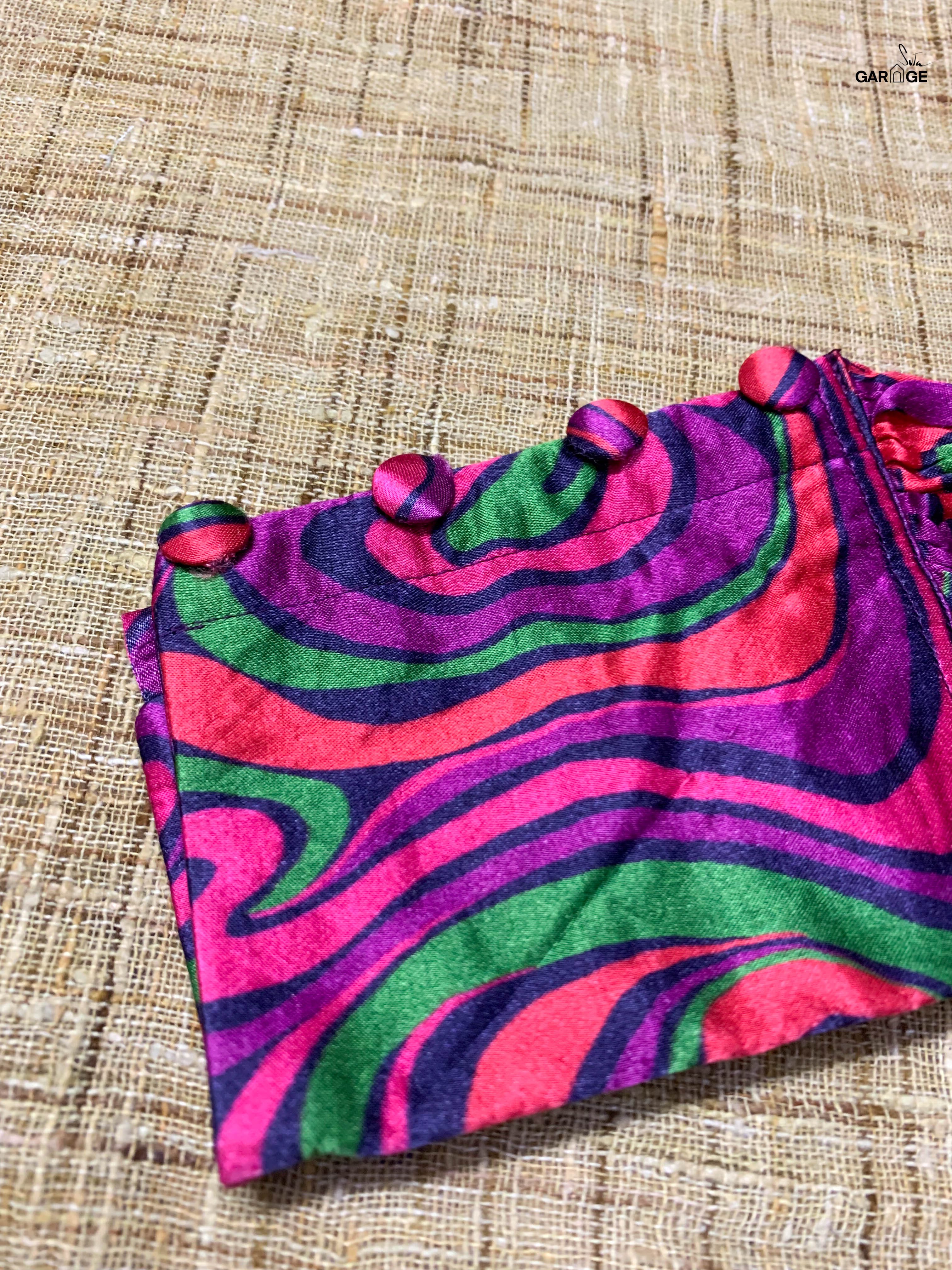 Ta, the model is wearing sizes blouse and saree is Flower FrecklesPhool Patti