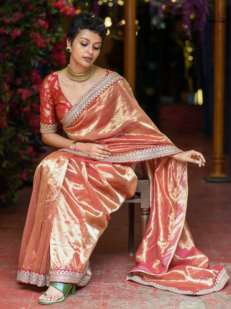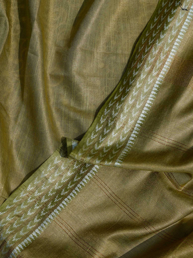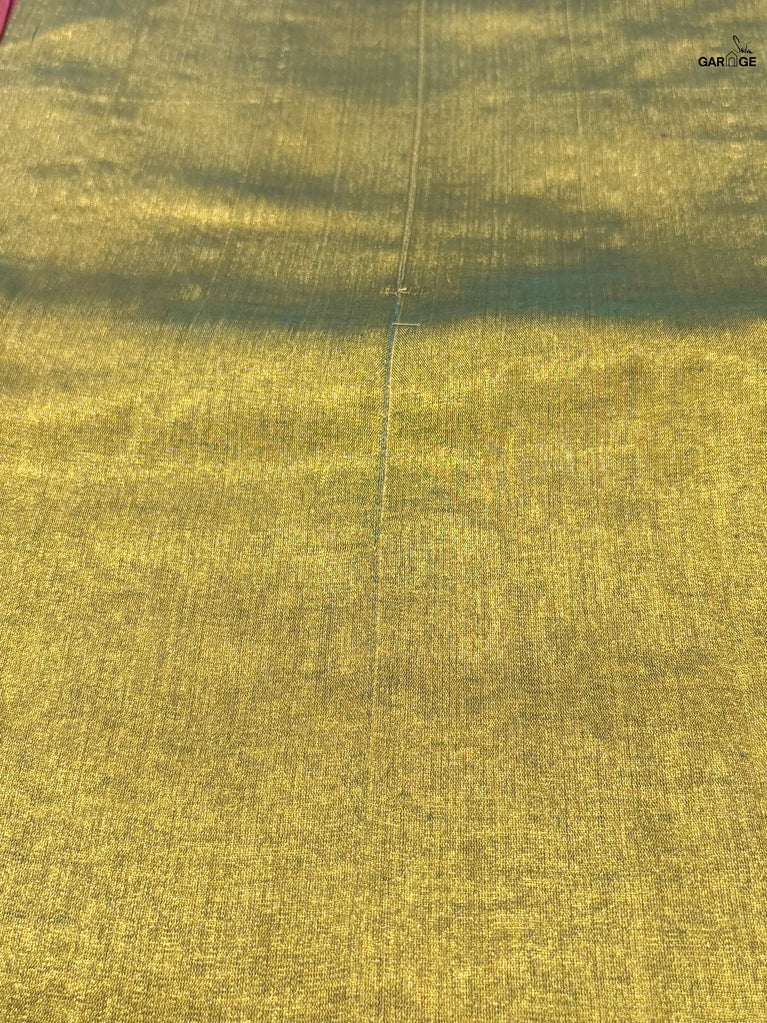A gold saree that feels regal and luminous. The shade glows with liquid confidence and timeless charm. The geometric dobby border adds texture and balance, giving the saree a refined finish. Perfect for festive evenings that call for effortless elegance. Comes with a matching blouse piece, no fall.