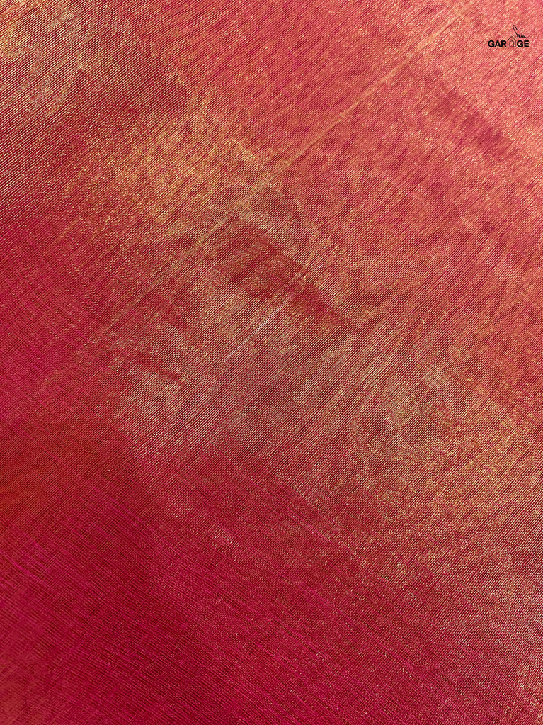 Silk is a natural fibre produced by the cocoons of silkworms. The shimmering appearance of silk is attributed to the prism-like structure of its fibres. While being smooth and soft, pure silk is also extremely durable and not slippery. Pure silk has been used in this rich red saree, to create a piece that is truly special and memorable.