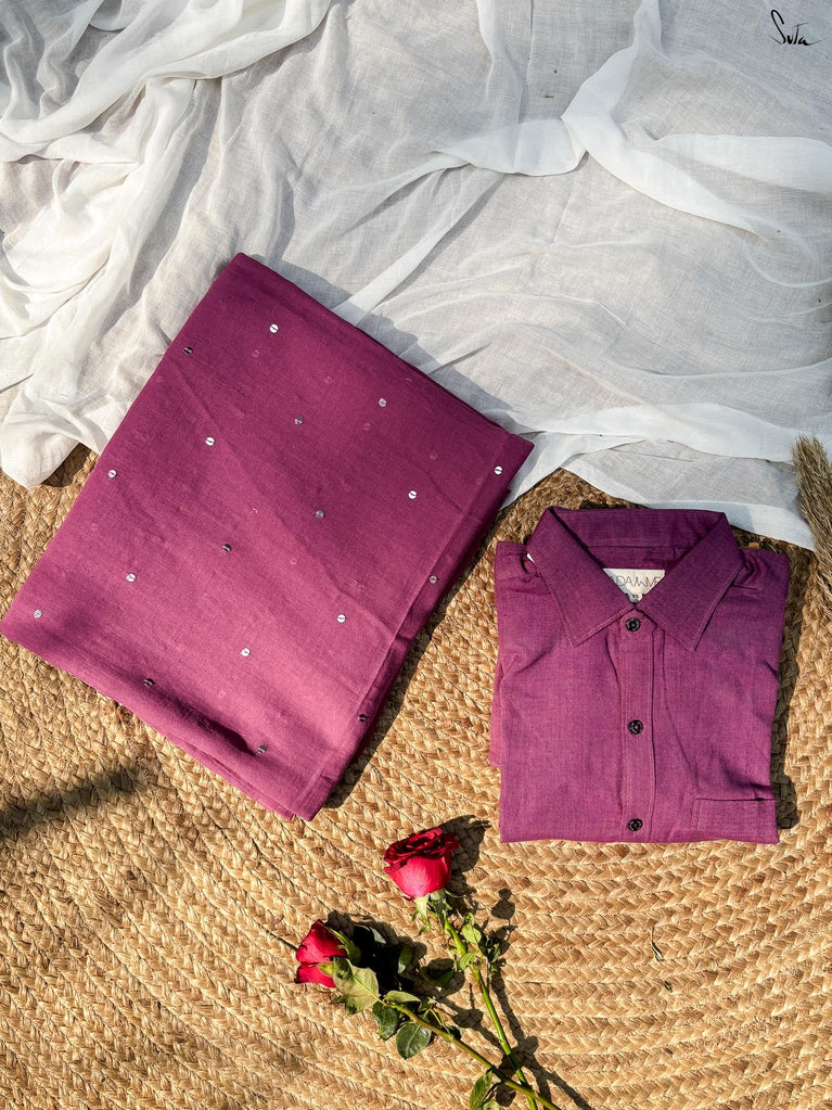 Slow love. Strong love. The kind you savour.Angoori Mitti brings together Gehra Neel, deep and dramatic like midnight thoughts, with Wine Not, a shirt - rich, bold, and a little irresistible.This one lingers - intense, intoxicating, and best enjoyed without rushing.