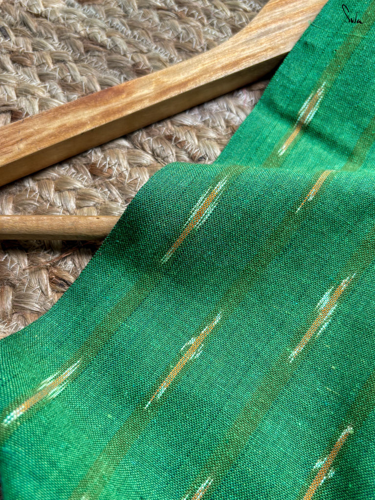 A gold saree that feels regal and luminous. The shade glows with liquid confidence and timeless charm. The geometric dobby border adds texture and balance, giving the saree a refined finish. Perfect for festive evenings that call for effortless elegance. Comes with a matching blouse piece, no fall.