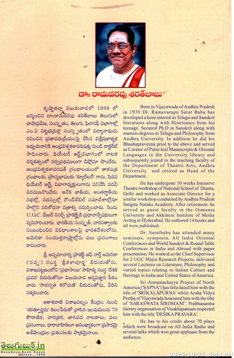 Bharatha Bharathi-Kavithraya Mahabharata Padya Manulaku Hrudya Vyakhya