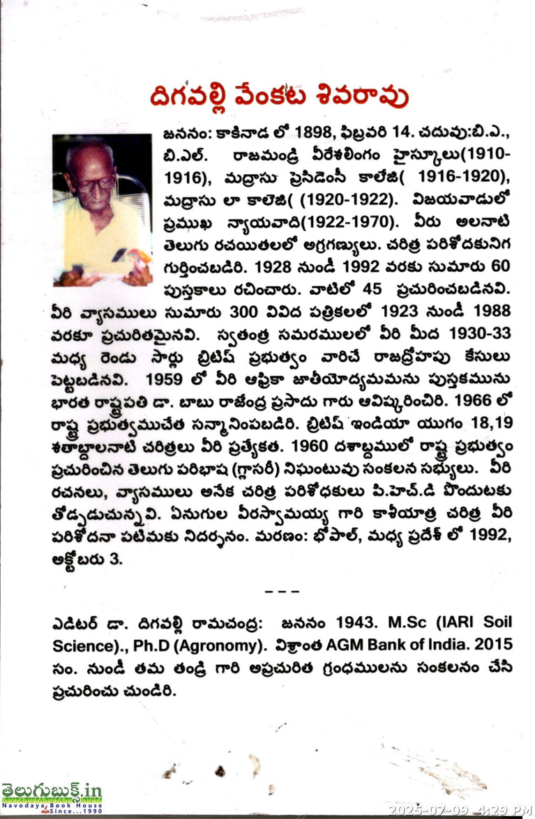 Digavalli Venkata Shivarao Na Sahitya Jeevithamu
