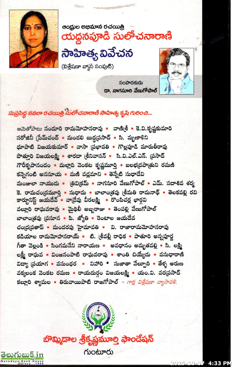 Andhrula Abhimana Rachayithri Yaddanapudi Sulochanarani Sahitya Vivechana