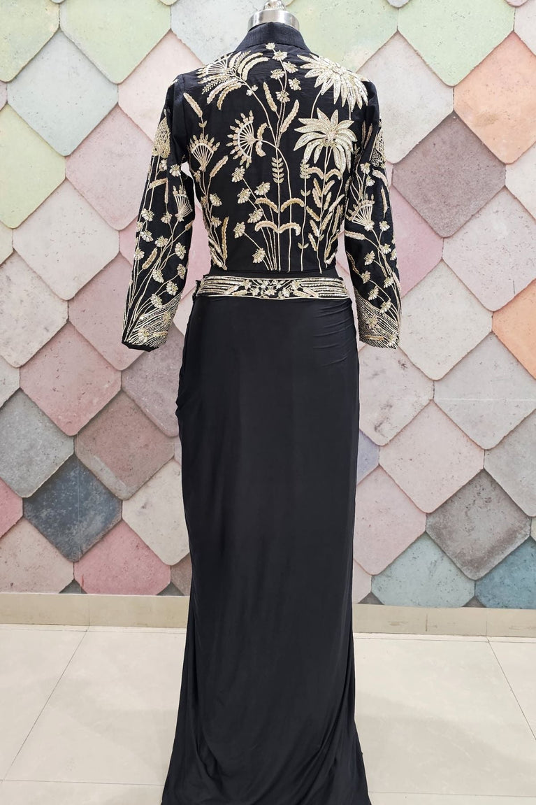 The dramatic silhouette and rich detailing make it a head-turner, perfect for making unforgettable entrances at every event.