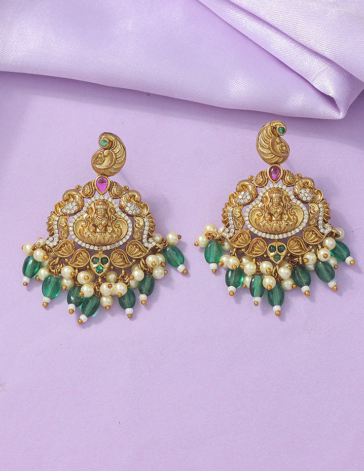 Designer Lakshmi Devi Emerald Matt Kempu Necklace Set