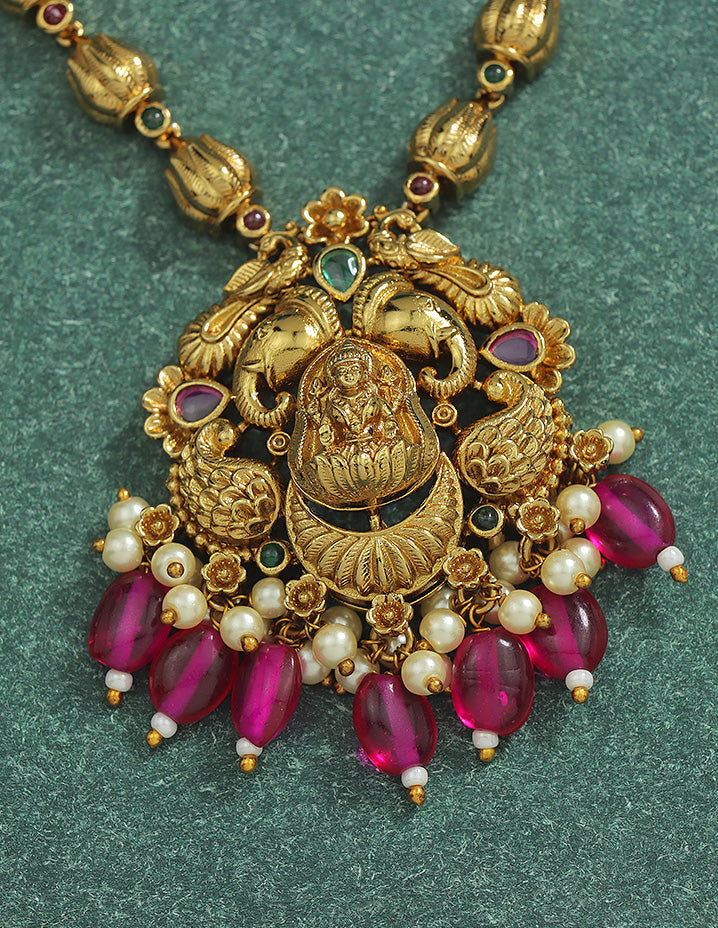 Designer Lakshmi Devi Ruby Matt Kempu Necklace Set