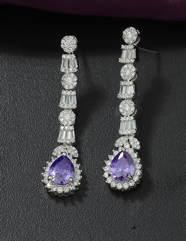 Turn heads with this Rhodium polish necklace set, featuring shimmering White and Amethyst AD stones for a classy touch. Perfect for elegant occasions, it adds timeless charm to any outfit.