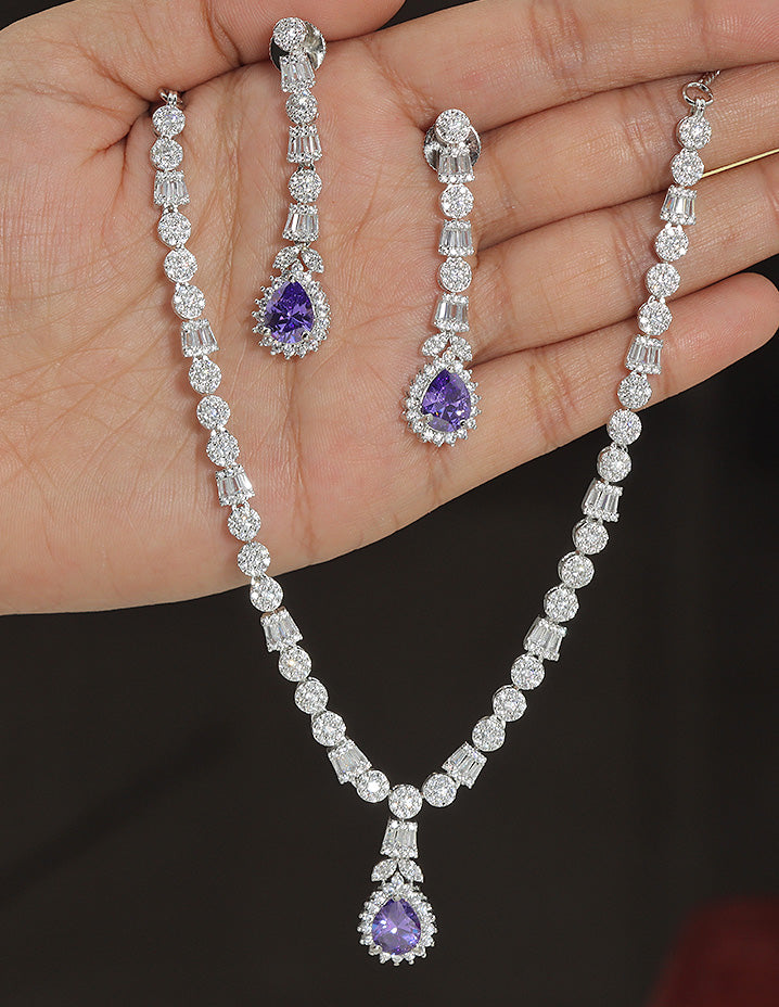 Designer Rhodium Polish Zirconia Necklace Set