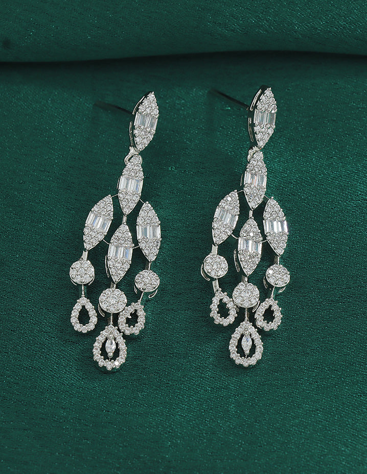 A radiant Rhodium-toned necklace and earring set adorned with sparkling Bud and floral motifs, perfectly blending elegance and charm for your special occasions.