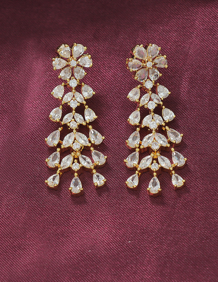 Elevate your style with this Designer Zirconia Elegance Necklace Set, featuring radiant white stones and a refined gold polish for timeless sophistication. Perfectly crafted to add a luxurious touch to any ensemble.