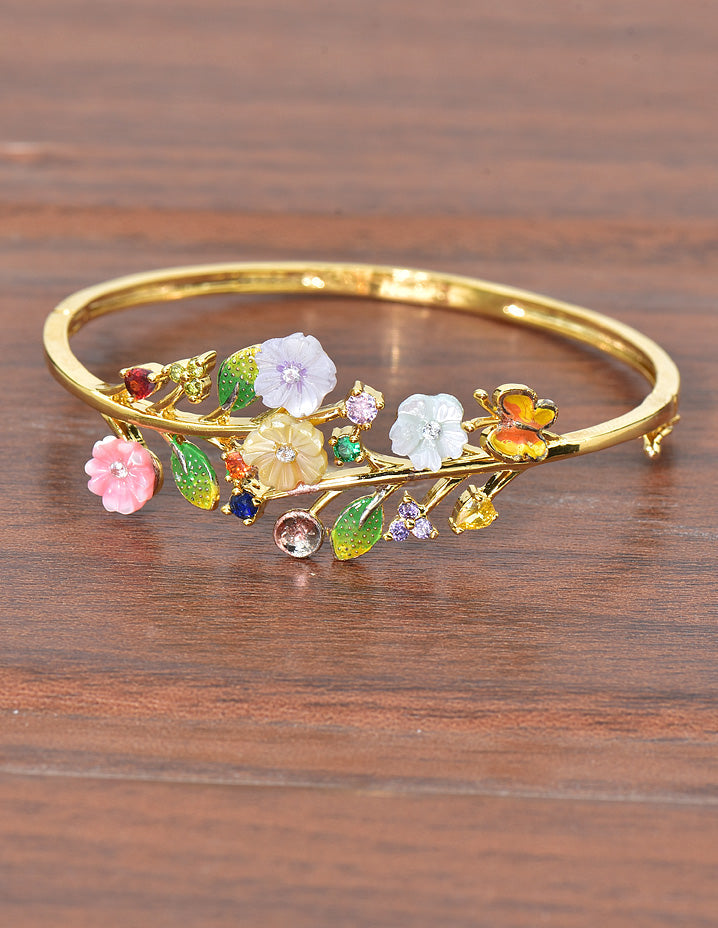 This beautiful Gold Polish plated Floral Bracelet is made of the highest quality metalwork and embroidered with dazzling Italian Flowers. Best for any season, this stylish bracelet will make you stand out in the crowd any day. Whether it's a friend's party or a formal event, this bracelet is perfect for any occasion.