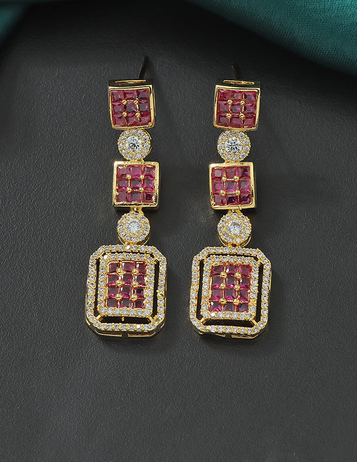 Complete your night event saree look with our dazzling rhodium and gold polish Studs. The sparkling American diamonds and White Stones will leave your peers stunned.